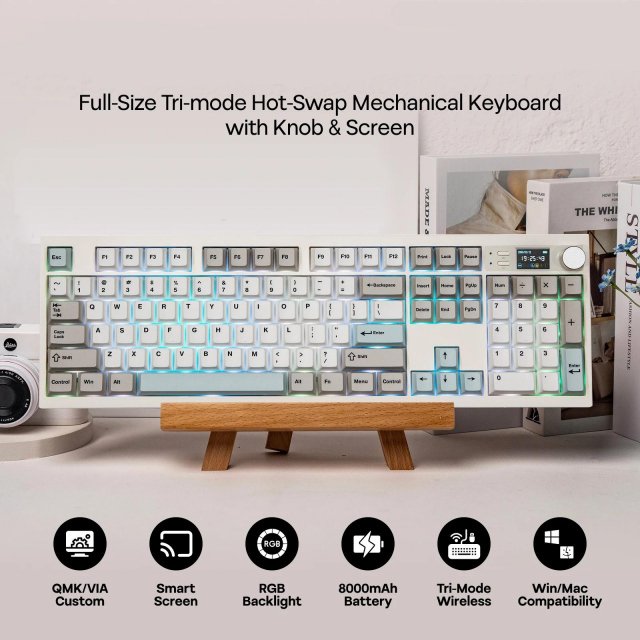 Full-Size Tri-Mode Mechanical Keyboard with Screen & Knob
